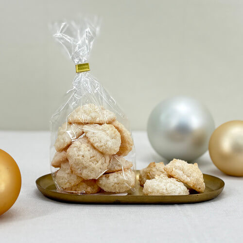 Unsere Kokosmakronen werden in unserer Traditionsbäckerei frisch von Hand aufgeschlagen und schonend gebacken. Mit ihrem intensiven Kokosaroma, der saftig-weichen Konsistenz und einem Hauch feiner Süße sind sie ein echter Klassiker der Weihnachtszeit – ideal zum Genießen oder Verschenken.